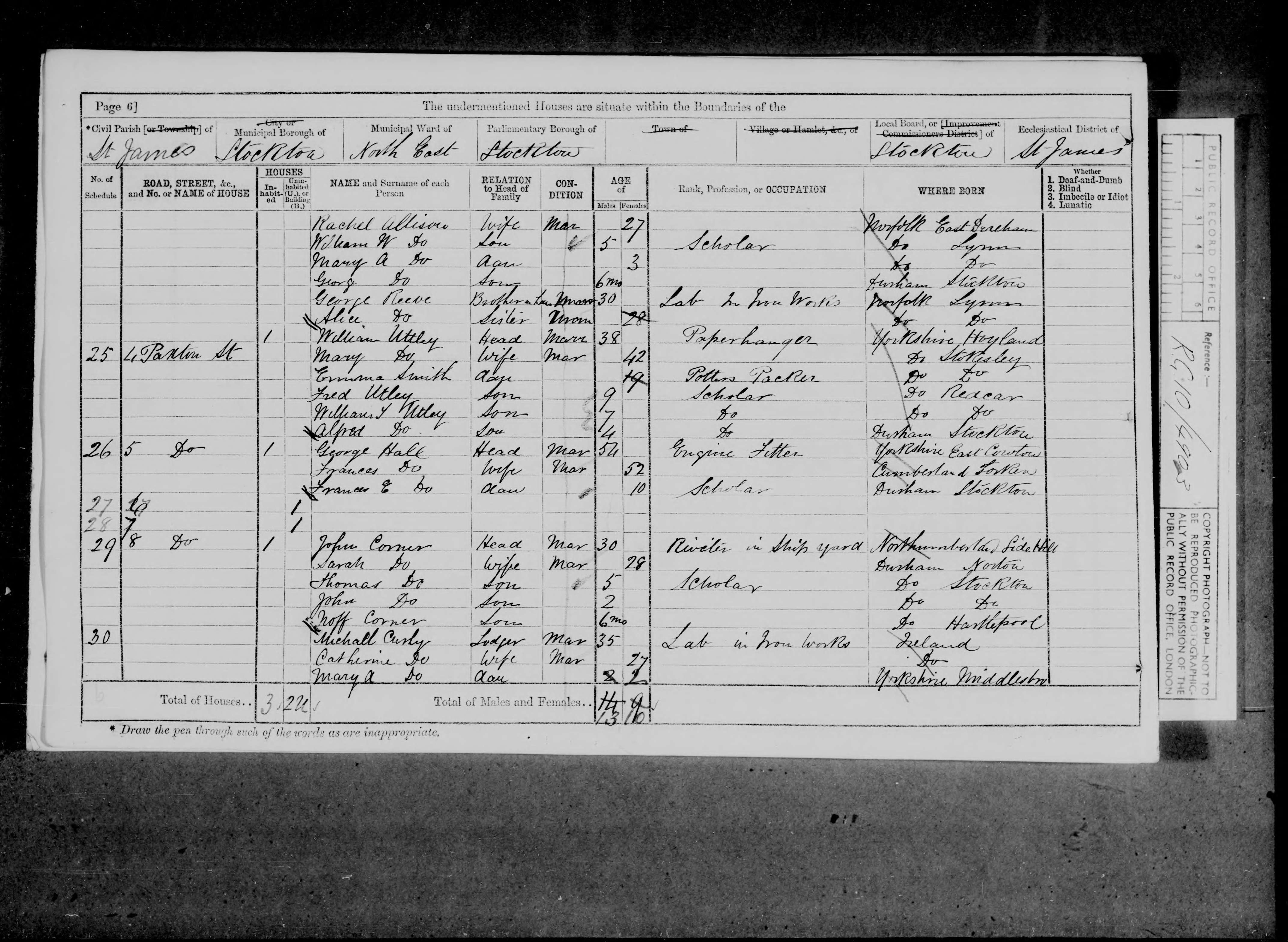 John Corner Son Single Male 14 1867 Driver Stockton, Durham, England