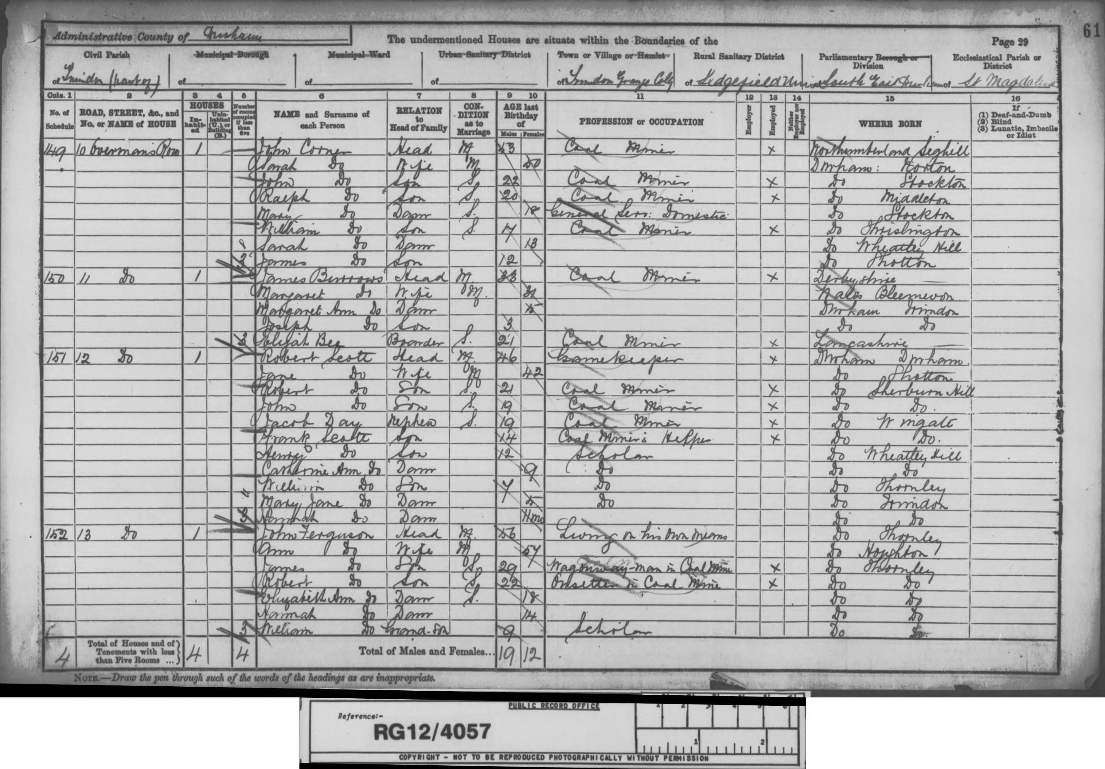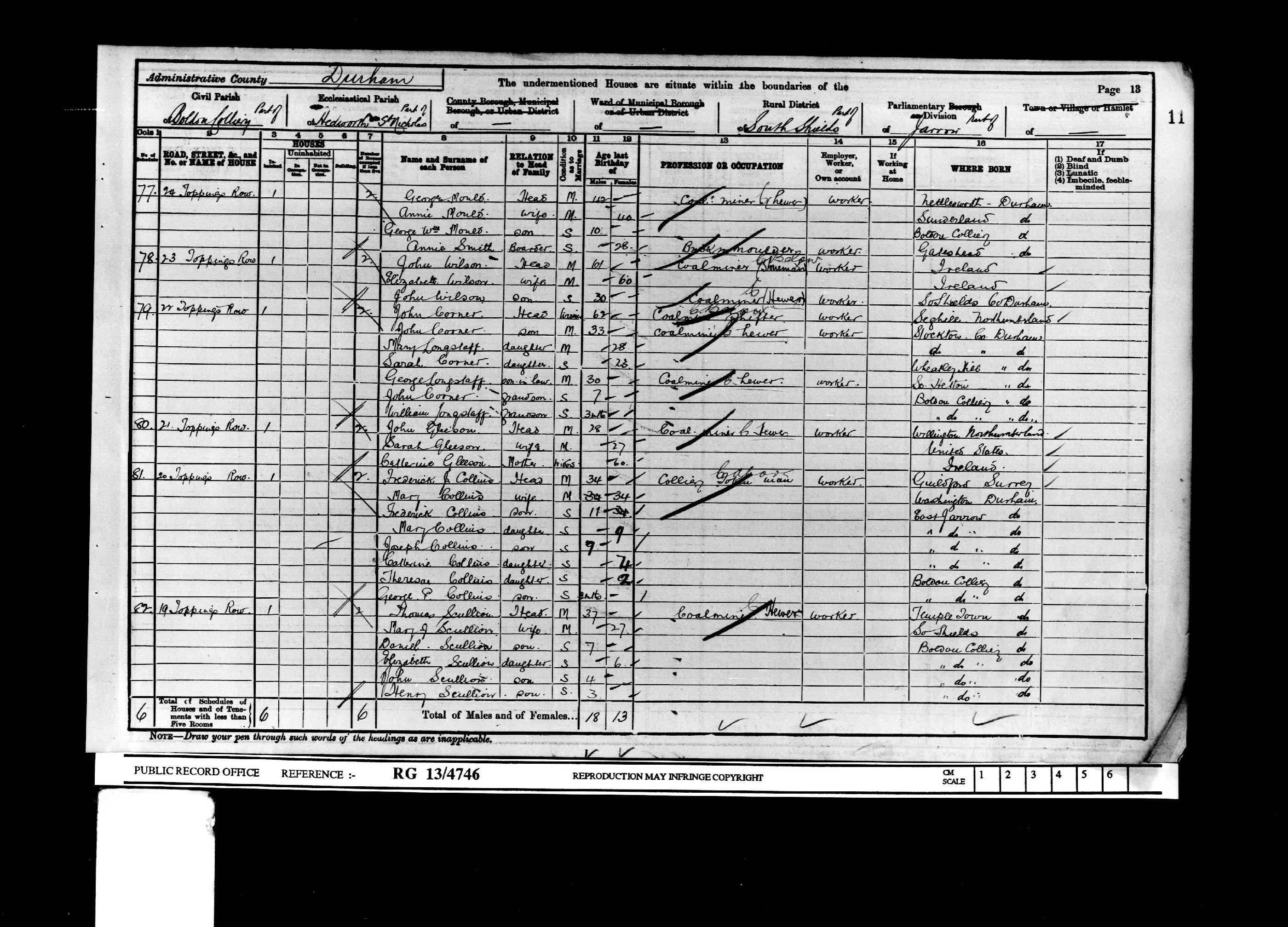 - [S624] 1881 Census Coxhoe, Smokey Row, Coxhoe.