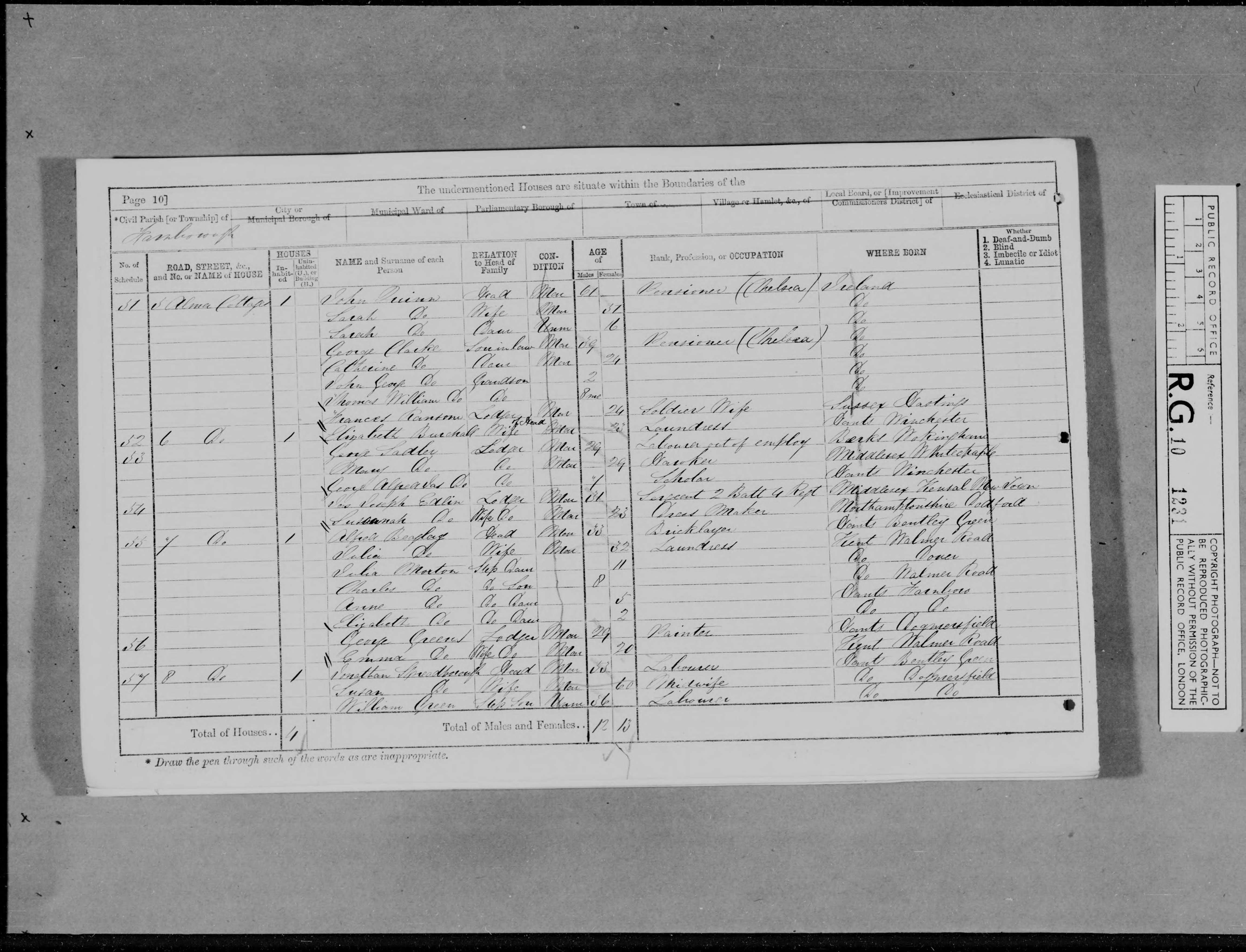 | Census 1891* | 5 April 1891 | James Spreadboroughappeared in the 1891 census at Cottage, Aldershot Stubbs, Aldershot, Farnham, Surrey, England.11 |