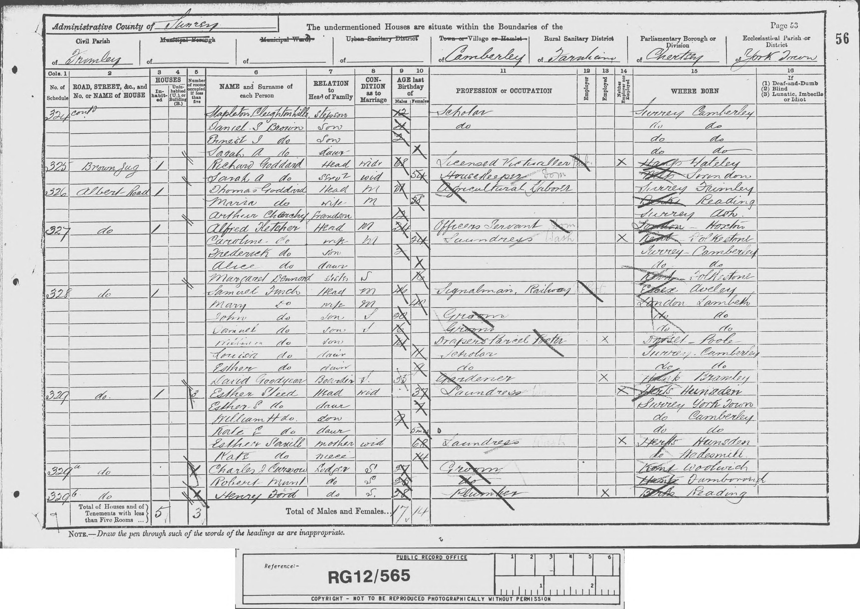Index (c) IRI. Used by permission of FamilySearch Intl - [S649] 1881 Census Farnham, 1881 England, Wales & Scotland Census Transcription